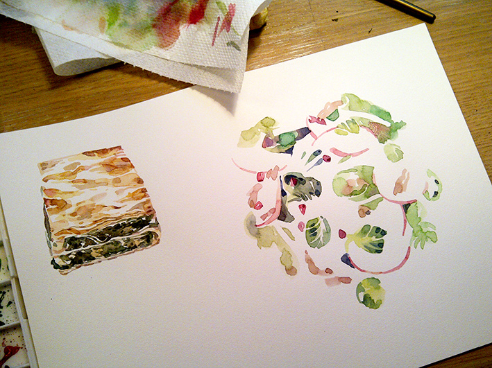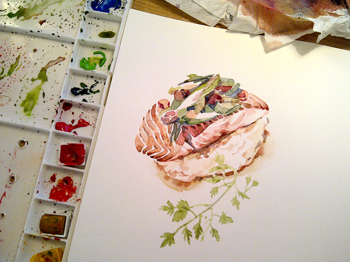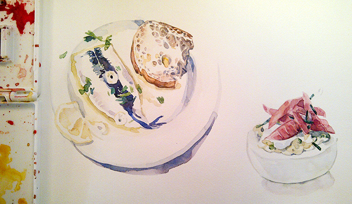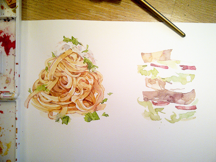 I'd love to work on a restaurant menu project, but figured that I should have some food in my portfolio, so I took a stab at studying food in watercolour. Funnest, hungriest week of my life.