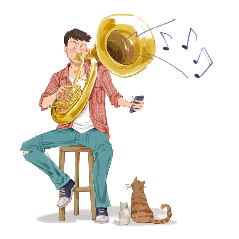 "Now you can order pizza while playing the tuba"
