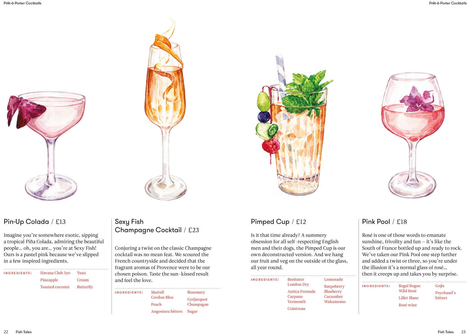6 house cocktails commissioned by &Smith desigh studio for the restaurant Sexy Fish in London.